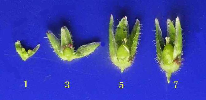 ![]() 3・・葯から花粉は出ていない、未受粉 |