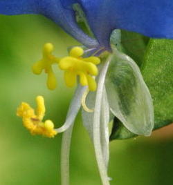 | ツユクサは 両性花を先に咲かせ果実をつくった後は、 めしべ(子房)を成熟させずに花粉だけを出す雄花を咲かせています。 おそらく、結実させ種子を確保した後は、種子の成長にエネルギーを 有効に使うような上手な仕組みを持っているのでしょうね。 |